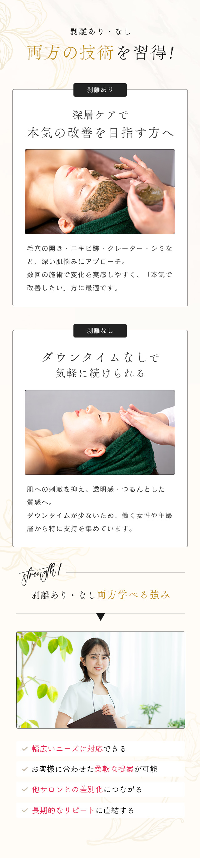 はい、学べます。剥離(皮向け)を起こすことも、剥離させないようにすることも自由にコントロールできるようになります。